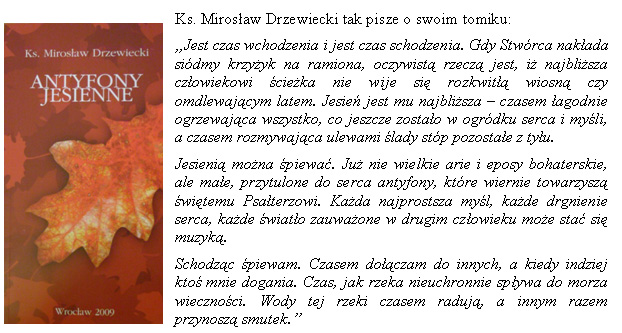 ks. Mirosława Drzewieckiego "Antyfony Jesienne", wydany wiosną 2009 roku.